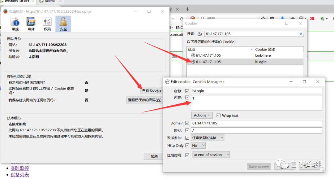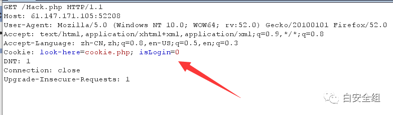 我们抓包这个hack页面,会发现这里有一个cookie的验证登录,这里我们试试改成1,看看可不可以绕过