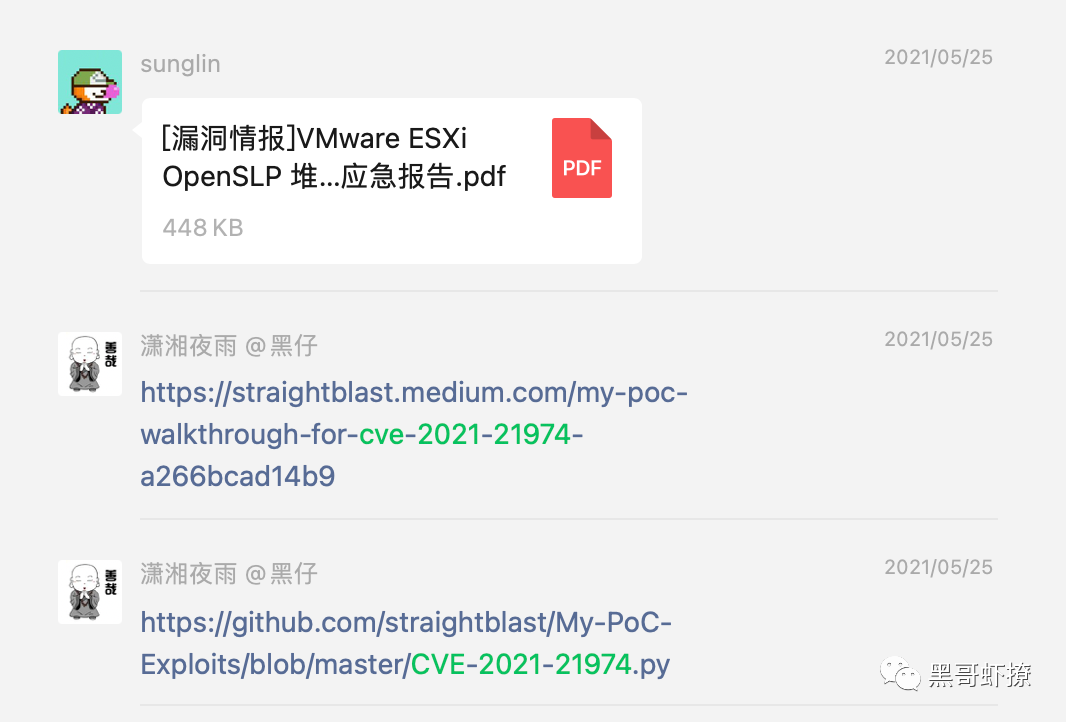 随即我们也做了一些分析,很显然这个是针对VMWare ESXi设备,从被攻击目标涉及的ESXi版本信息关联到一个2年前的漏洞CVE-2021-21974,这个漏洞在我们知道创宇404实验室2021年5月25日应急处理过