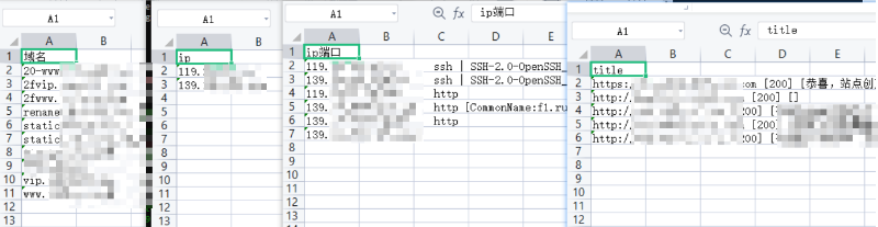 2、结果显示,包括域名、ip、端口号、网站标题: