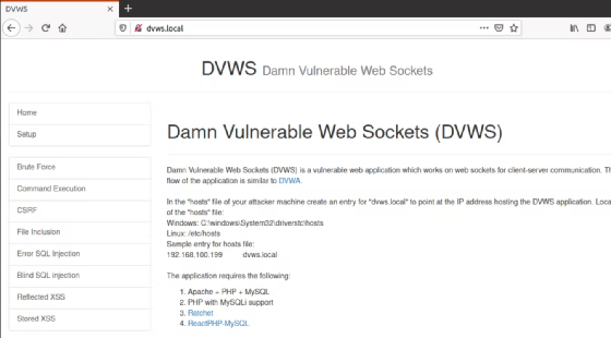 DVWS 类似于 DVWA,但是客户端之间的通信是通过 WebSockets 进行,项目地址: