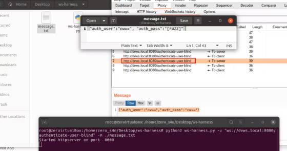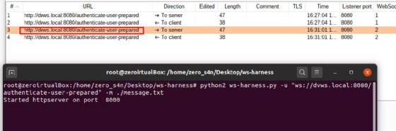 python ws-harness.py -u “ws://dvws.local:8080” -m ./message.txt