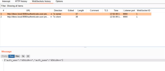 Burp 截取到的数据包,从 WebSocket History 选项卡中可以看到: