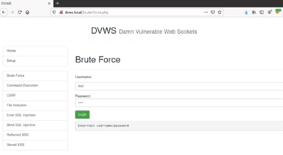打开 dvws 左侧菜单中的暴力破解实验,输入账号密码之后登录: