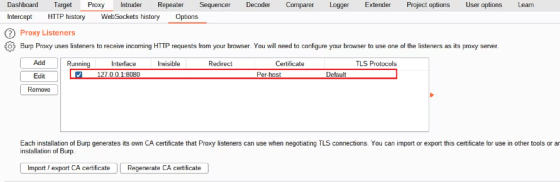 首先在 burp 上设置好监听端口,然后在浏览器中设置代理为 burp 监听的地址: