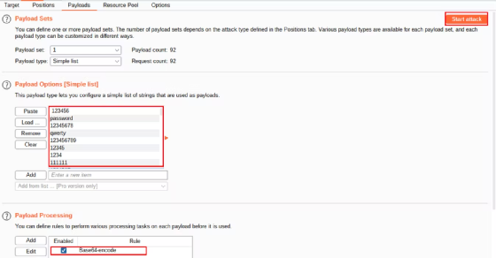 由于靶场中的用户名密码使用了 base64 编码,所以需要在 burp 中设置: