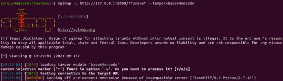 使用 sqlmap 针对该接口进行测试,需要用到 base64encode 这个 tamper: