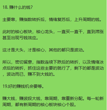 盘中翻看在微信文件助手记录的笔记,是春节后去整理总结的,看到第18条,感慨到,其实市场一直都没变。