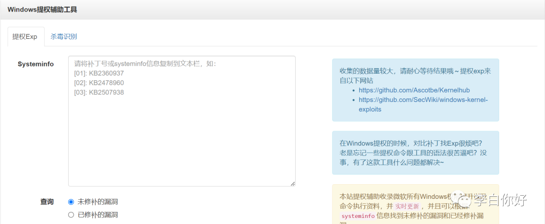 使用WinSystemHelper检查可利用的漏洞。该工具适合在任何Windows服务器上进行已知提权漏洞的检测