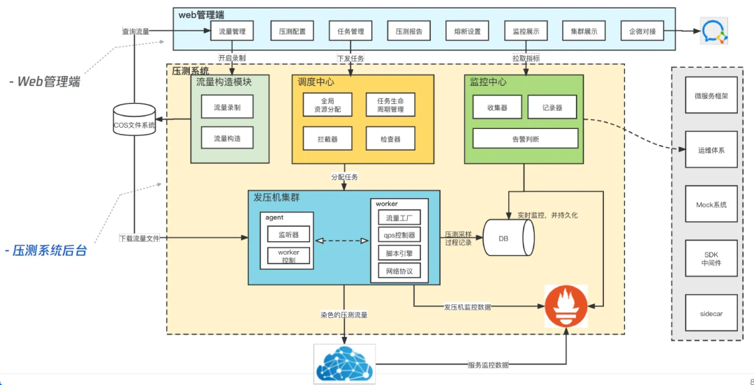 压测引擎:对接各类协议,管理发压资源,以可调节的速率发送请求。