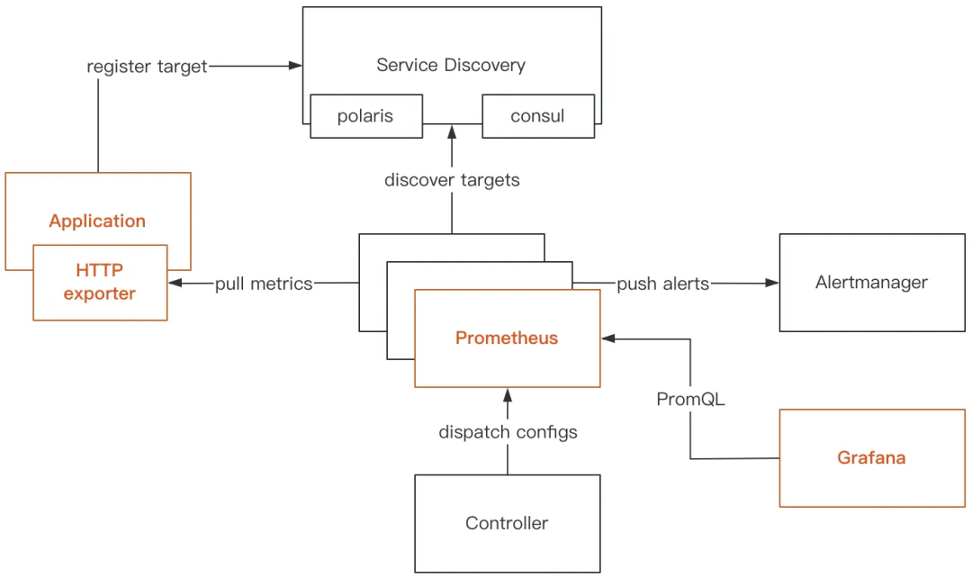 我们基于Prometheus构建联邦集群,实现千万指标的采集和存储,提供秒级监控,搭配Grafana做可视化展示。