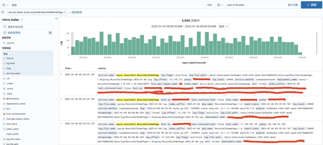 下图为音乐馆首页服务的远程日志: