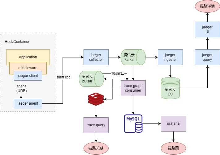 我们基于jaeger构建分布式链路追踪系统,可以实现分布式架构下的事务追踪、性能分析、故障溯源、服务依赖拓扑。