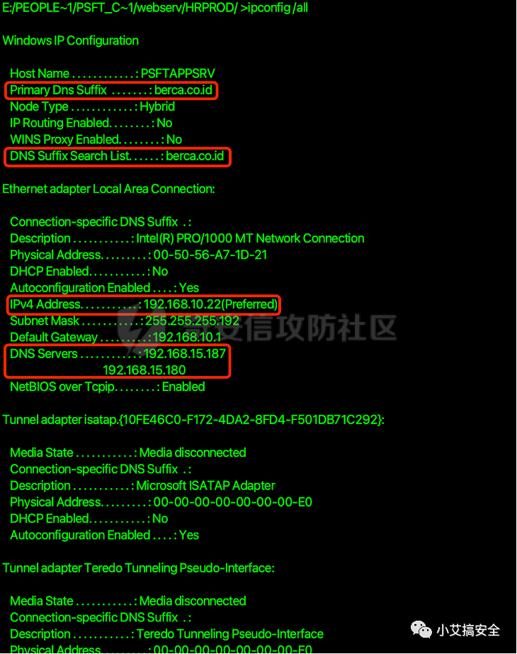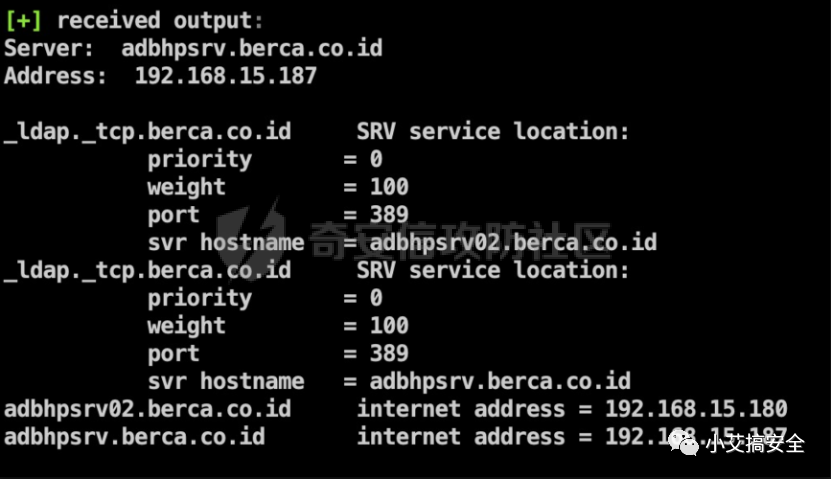 收集到这里,通过DNS服务器初步判断,192.168.15.180、192.168.15.187这两台就是域控机器,后面也证实这两台就是域控机器。
