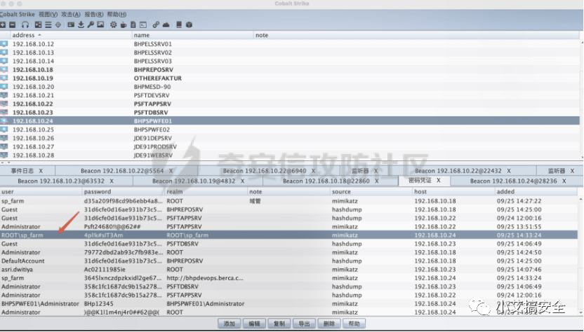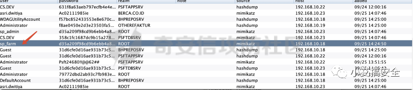 当我成功横向24的时候发现了一个域管用户sp\_farm,并成功抓取到了明文密码