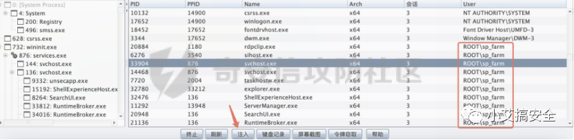 2. 如果没域管明文,可以查看当前机子是否有域管进程,注入域管进程上线