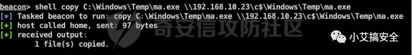 shell copy C:\\Windows\\Temp\\ma.exe \\\\192.168.10.23\\c$\\Windows\\Temp\\ma.exe