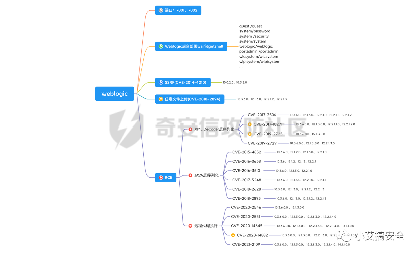 Ps: 这里自己总结了一些Weblogic常见漏洞