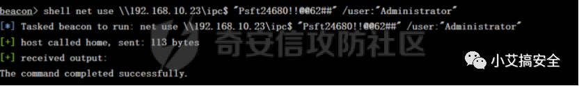 shell net use \\\\192.168.10.23\\ipc$ "Psft24680[email protected]@62##" /user:"Administrator"