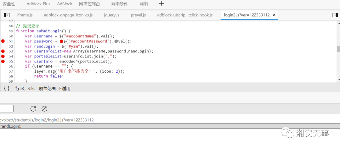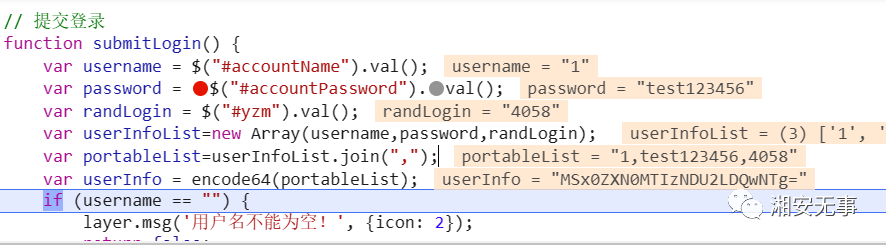 接下来点击下一步,没学过js的也可以很容易的看出来了,是encode64这个函数对portableList进行加密,而portableList是由账号秘密验证码 拼接起来了的