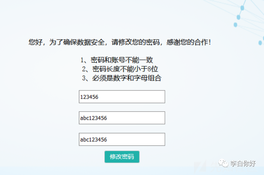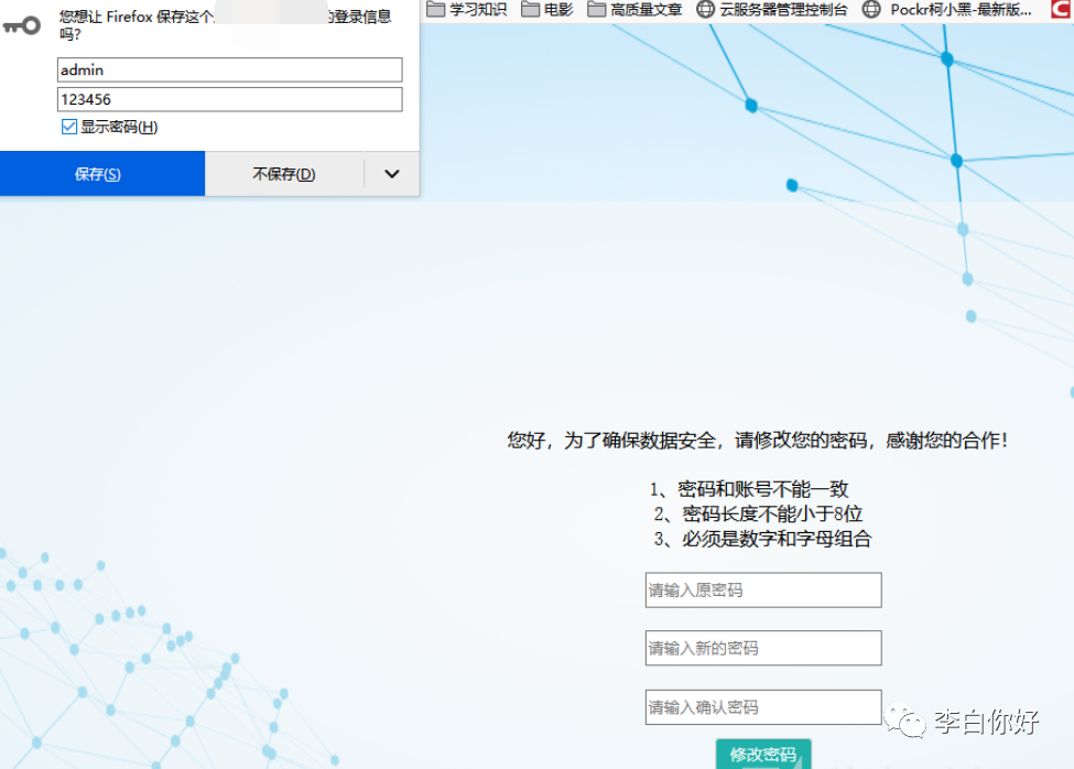 账号 admin 密码123456(只要是数字就会自动进入修改密码页面)