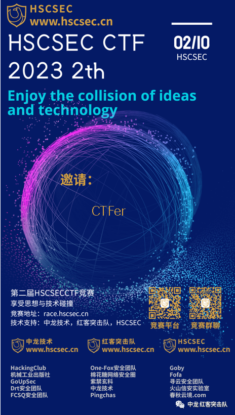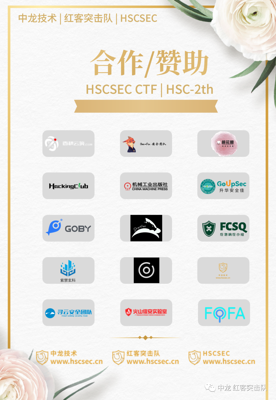 非常感谢国内各大安全厂商以及安全组织赞助的物料奖品,也预祝各位CTFer取得好成绩!