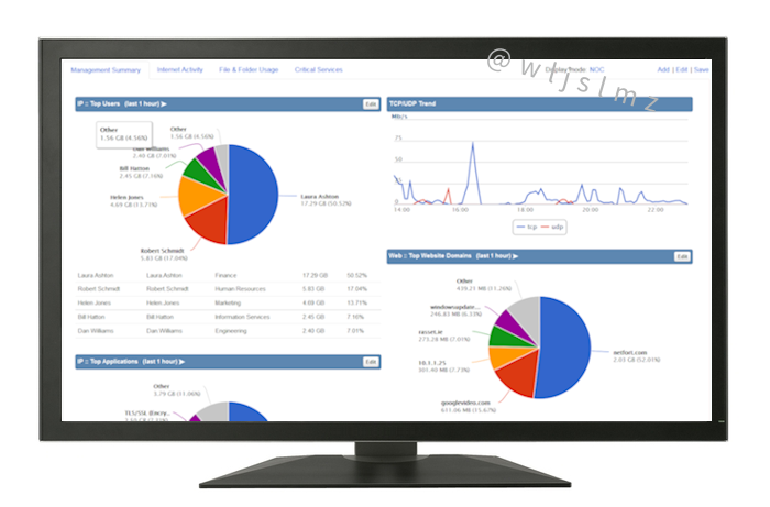 首先,管理员可以查看 WAN 和 LAN 上的活动,然后深入到单个设备和用户,轻松清除占用带宽的人!