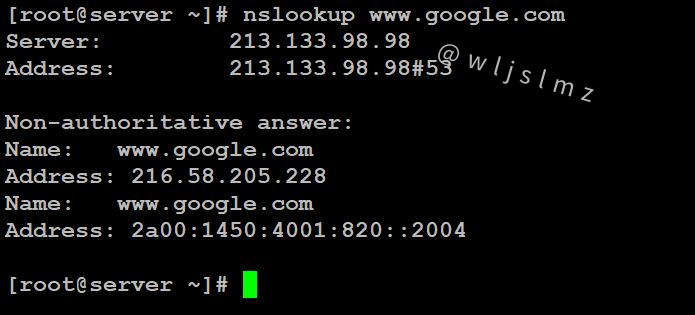 如上图所示,在运行“ nslookup www.google.com ”后,我们得到了 Google 的两个 IP 地址(一个 IPv4 和一个 IPv6)。