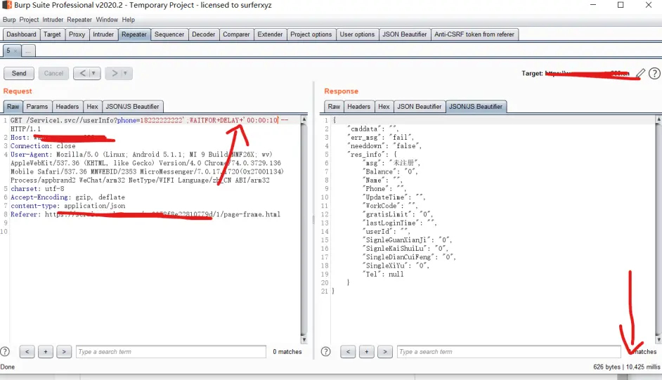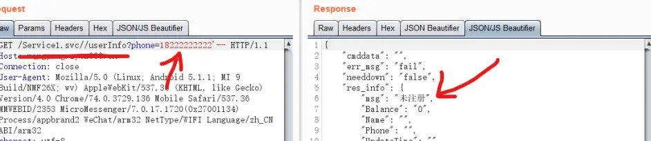 通过单引号 和 '--(单引号+mssql闭合) 发现返回包不同