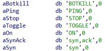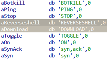 支持的指令包含DDoS攻击、暂停攻击、BOTKILL退出: