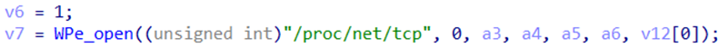 样本通过读取 "/proc/net/tcp" 中是否已有C2服务器地址的连接,来保证样本的单例运行: