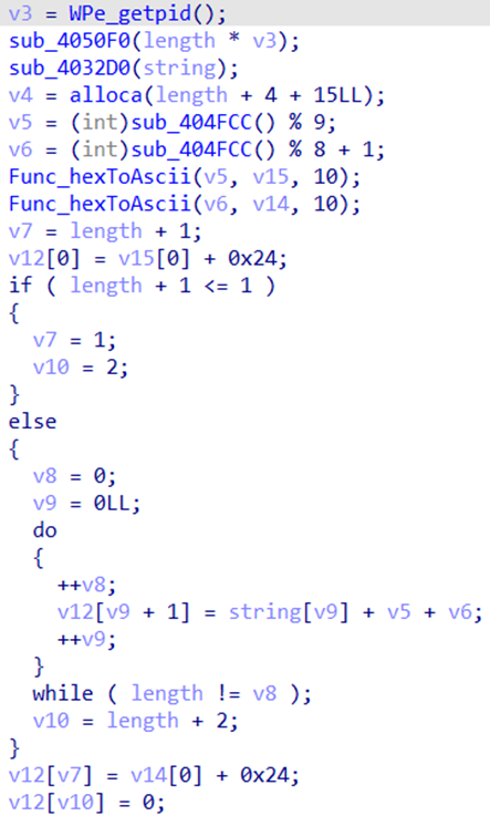 加密算法如下,加密key同数据一起发送给服务器,key与样本运行的PID相关,所以在PID相同时算法的加密key是相同的:
