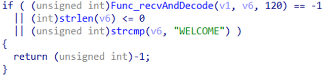 C2服务器收到上线包确认后会回复加密的 "WELCOME":