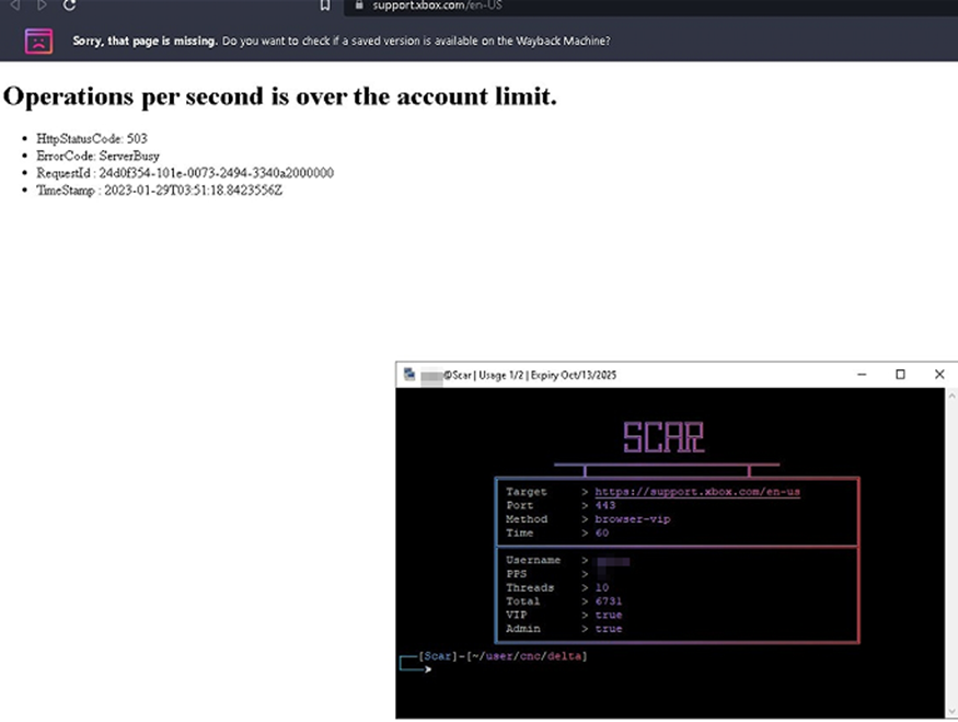 对Scar租赁僵尸网络进行分析,确认该租赁网络除了包含本次发现的新型僵尸网络样本外,还包含 Mirai 和 Moobot两大家族,与BotMaster 的聊天中也可以得知该团伙的攻击实力较高,微软Xbox的支持页面 "support.xbox.com" 证实曾被该团伙DDoS攻击导致宕机。