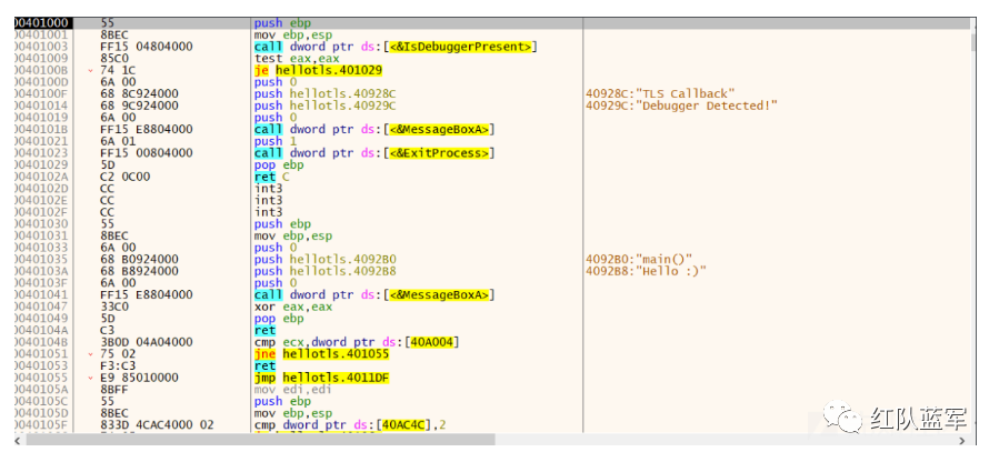 MessageBoxA(NULL, "Debugger Detected!", "TLS Callback", MB_OK);