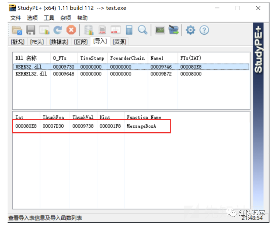 这里IAT表中的实际地址可以使用PE查看器进行查找: