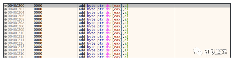 现在就只需要将TLS回调函数的具体代码写入文件即可,首先用调试器打开这个程序,然后根据前面的数据(40C200)可以定位到我们新添加的节区的空白部分: