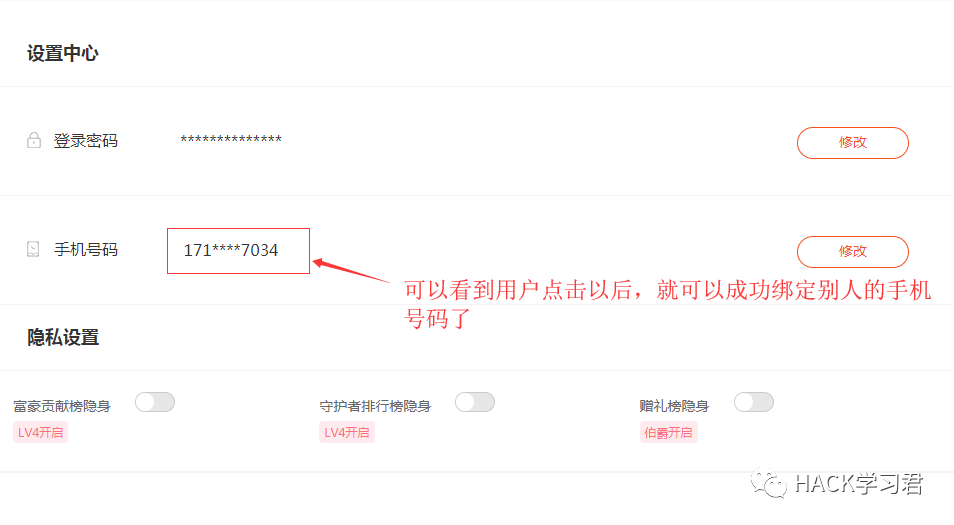 最终用户即可点击我们的一个链接就给强制绑定一个新手机号码,然后我们就可以通过找回密码,重置用户登录密码