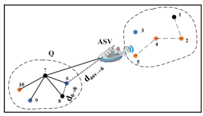 其中q_i是AUG i采集的数据计数,当AUG i完成一次交互时,复位为0;D是一个交互周期收集的数据量;B为AUG到ASV的无线信道带宽;I_i是i的相互作用周期。