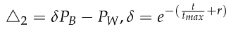 其中δ为自适应迭代因子,t为当前迭代次数;tmax是最大迭代次数;r是(0,1)之间的随机数。这种方法的思想是,P_W应该向P_B学习,因为它们属于相同的M^j,并且在迭代早期,差青蛙模仿好青蛙的学习行为应该考虑算法的收敛速度和全局搜索能力。在保证不陷入局部最优的同时,δ值越大越好,以加快学习速度,并保证较大的搜索空间;而在迭代后期,应该考虑算法的局部搜索能力以提高解的精确度,因此δ应该是较小的值以减慢学习速度并确保局部搜索能力,这最终平衡了局部和全局搜索。