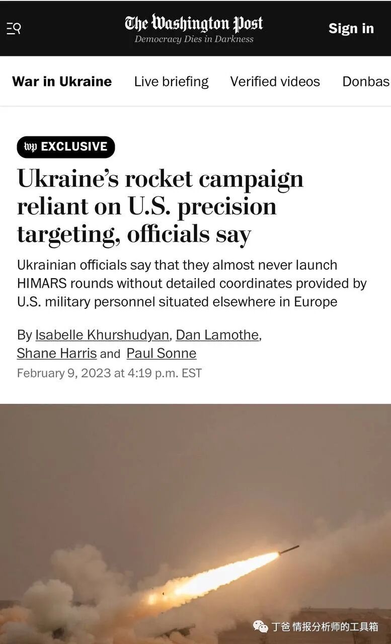 2023年2月9日,美国《华盛顿邮报》报道说:乌克兰官员说,如果没有驻扎在欧洲其他地方的美国军事人员提供详细坐标,他们几乎从不发射“海马斯”导弹。