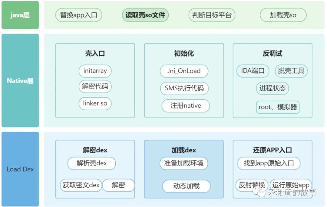 通过动态加载原app的Application并执行,具体流程如下: