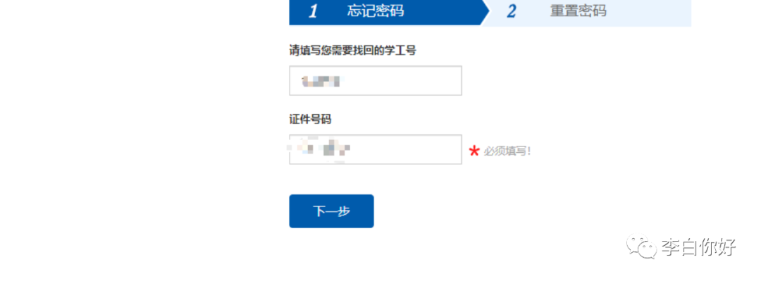这里正常验证的话,需要学号和身份证的信息,但是我们是没有身份证信息的,但是这里可以简单的抓包然后改包进行下一步。