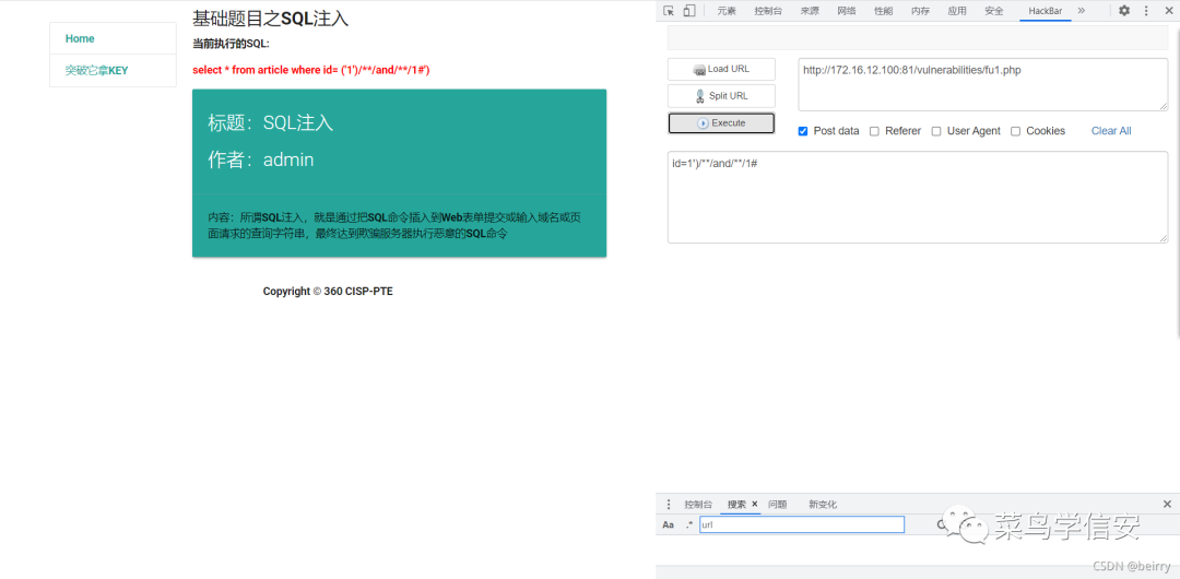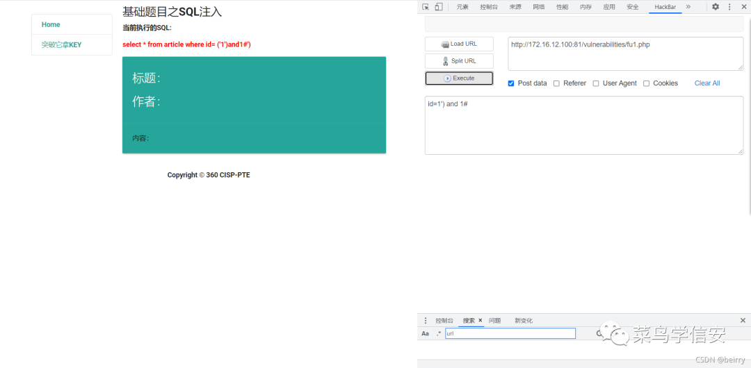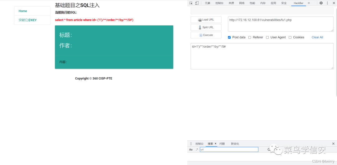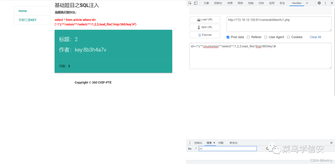 通过页面提示,我们要利用sql注入读取/tmp/360/key文件,读取的话就要用到load_file命令来去获取文件信息