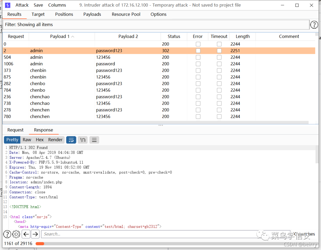发现账号:admin 密码:password123页面状态码为302,可能发生跳转