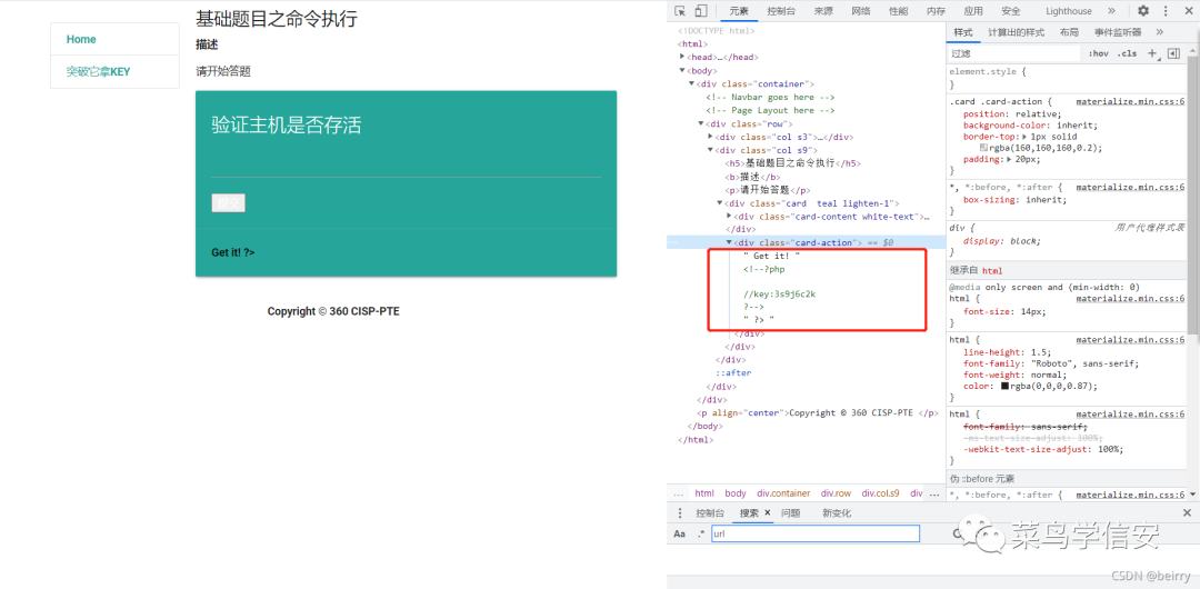 找到key.php的路径,那么只需要通过cat去看key.php内容即可