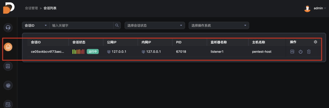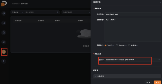 注意会话的选择,这里一般使用高权限的会话ID。新建任务之后,等待其运行完毕。
