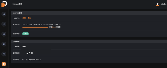 自动生成config.yaml 后 请修改 platform_host 地址为自己的对外IP 地址, 重启才生效,访问 http://127.0.0.1:1337,注意端口:2338 代理反连平台监听端口 1337 DayBreak 服务端 监听地址。激活 DayBreak,首次打开会进入激活页面,需要前往 https://daybreak.tophant.com/ 申请。填入申请的License即可激活。