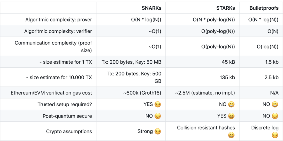 文末参考链接 [1] 描述了近十年来公开发表的 NIZK 方案及特点。