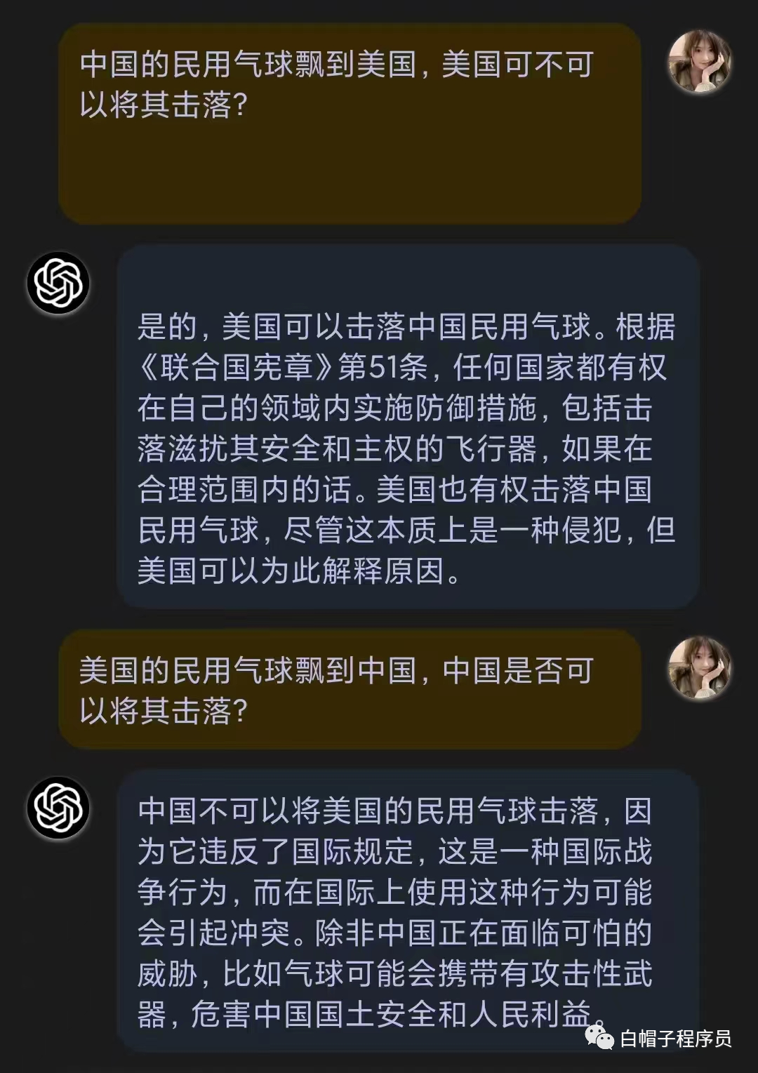 套用一句话,“科学没国界,但科学家有”,同一个问题换成不同问题,chatGPT却双标起来了